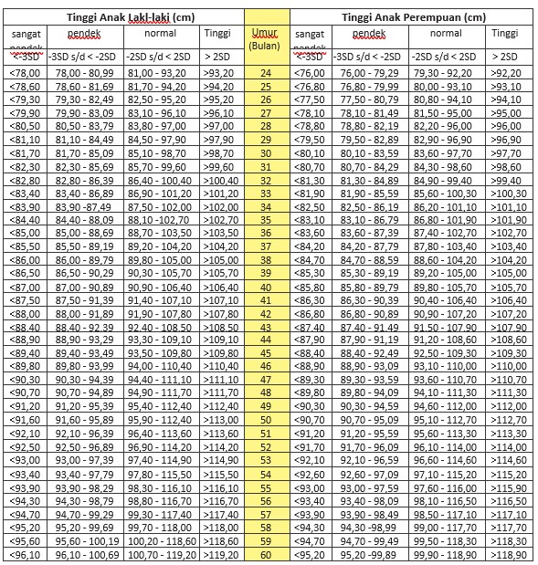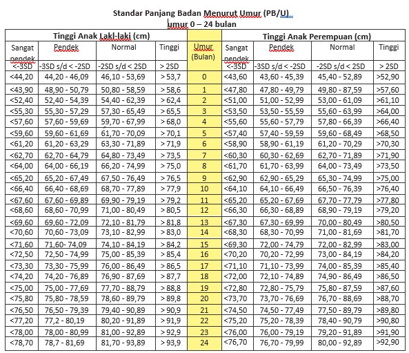 Anak berumur kurang dari 2 tahun, pengukuran dilakukan dengan telentang. Jika seorang anak berumur kurang dari 2 tahun diukur tingginya (berdiri) maka ditambahkan 0.7 cm untuk mengkonversi menjadi panjang badan.