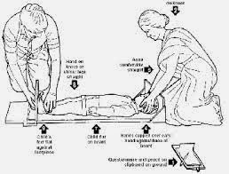 - Bayi dibaringkan telentang pada alas yang datar.